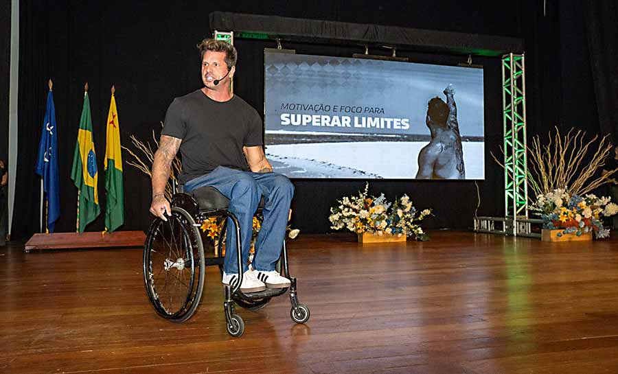 O Teatro dos Náuas, em Cruzeiro do Sul, foi palco na quinta-feira, 29, de uma noite marcada por emoção, reflexão e inspiração. Considerada uma das palestras mais aguardadas dos últimos anos no município, o encontro com o atleta paralímpico e apresentador Fernando Fernandes, promovido pela Secretaria de Governo do Acre (Segov), reuniu mais de 700 pessoas e transformou o espaço em um ambiente de aprendizado e motivação, reunindo servidores públicos e a comunidade em geral.