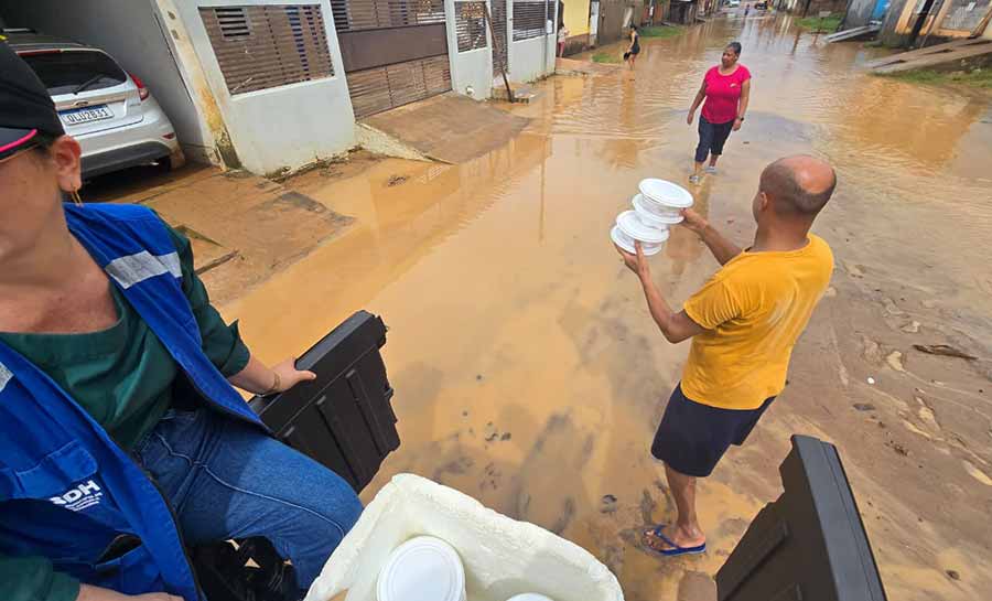 Pelo menos 12 bairros de Rio Branco foram atingidos pelas fortes chuvas registradas na manhã desta terça-feira (14), provocando enxurradas, alagamentos e prejuízos a dezenas de famílias. Em resposta imediata, a Prefeitura colocou em prática uma operação emergencial que inclui distribuição de marmitas, apoio às famílias desalojadas e ações de limpeza nas áreas afetadas.
