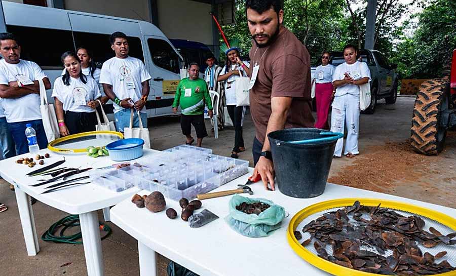 Em 2025, a bioeconomia consolidou-se como eixo central das ações da Funtac. Parcerias estratégicas com instituições como Serviço Brasileiro de Apoio às Micro e Pequenas Empresas (Sebrae), Secretaria de Estado de Meio Ambiente (Sema), universidades, institutos federais e prefeituras fortaleceram cadeias produtivas como sementes florestais, cacau nativo, óleos naturais, látex e produtos da sociobiodiversidade.