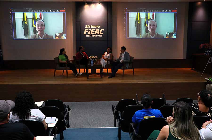 A gerente de Educação Profissional do SENAI/AC, Geane Farias, que atuou como mediadora da mesa, destacou que o Encontro da Aprendizagem é realizado há mais de 17 anos e reúne empresas cotistas do programa.