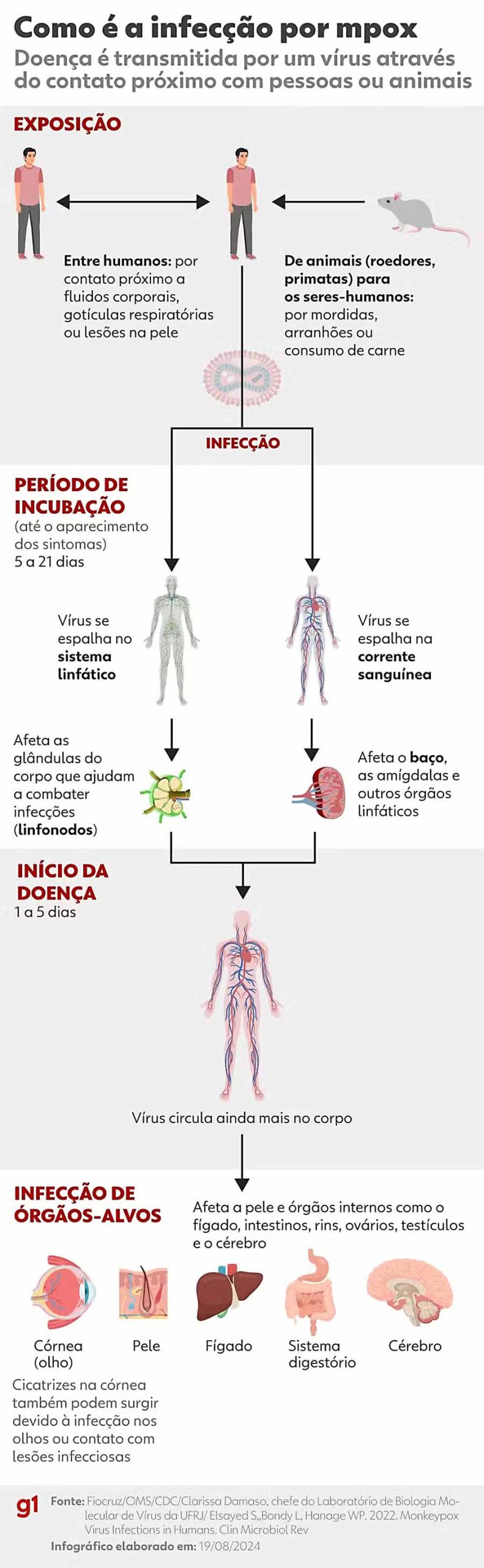 A mpox é uma doença viral causada pelo vírus monkeypox, da mesma família da varíola. A transmissão ocorre principalmente por contato próximo com lesões de pele, fluidos corporais, gotículas respiratórias ou objetos contaminados.