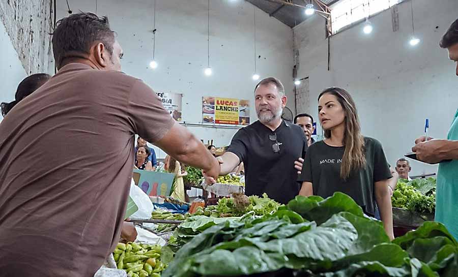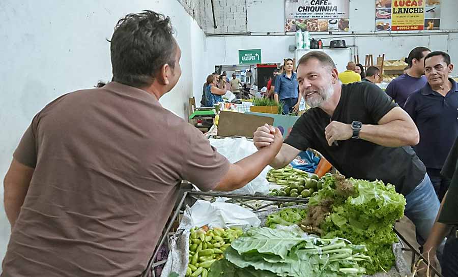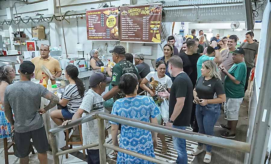 O prefeito de Rio Branco, Alysson Bestene, visitou o Mercado Elias Mansour, no centro da capital, onde tomou café da manhã com feirantes e comerciantes locais, além de acompanhar o andamento das obras de revitalização do espaço.