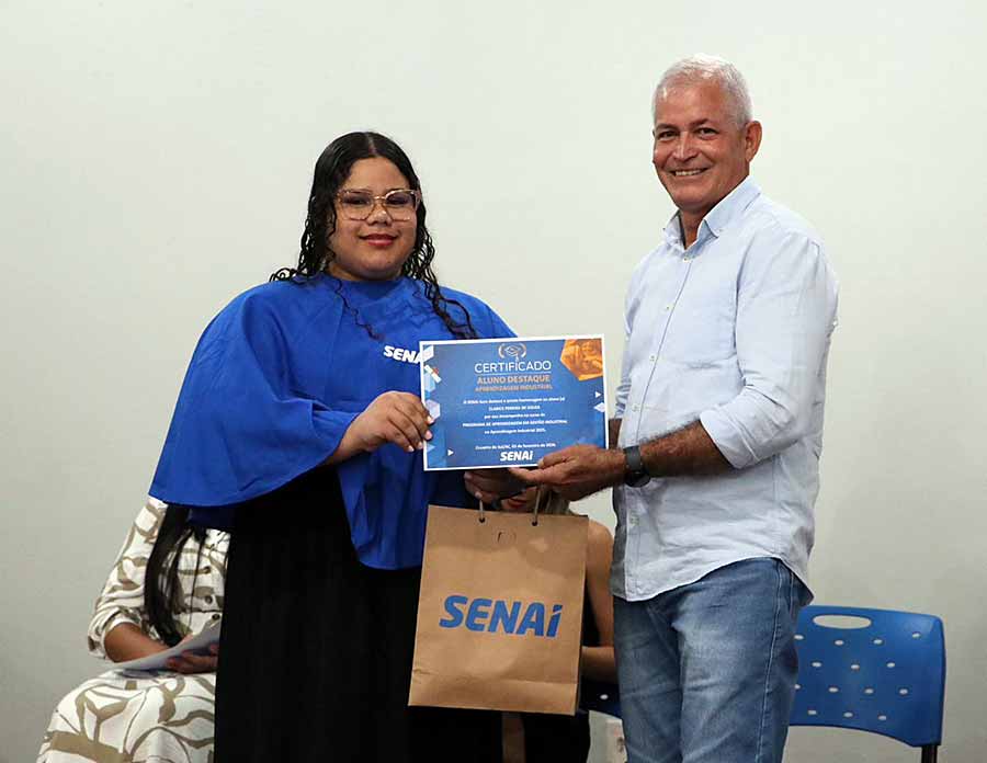 Ana Luiza da Silva Pires, formanda do curso de Gestão Industrial, realizou a prática do curso na Acreaves e enalteceu a qualidade do SENAI e do conteúdo prático desenvolvido dentro da empresa. “Isso nos ajuda a nos desenvolver e nos preparar para o mundo do trabalho. Temos uma base e uma experiência que contribuem para o nosso sucesso daqui para frente”, assinalou.