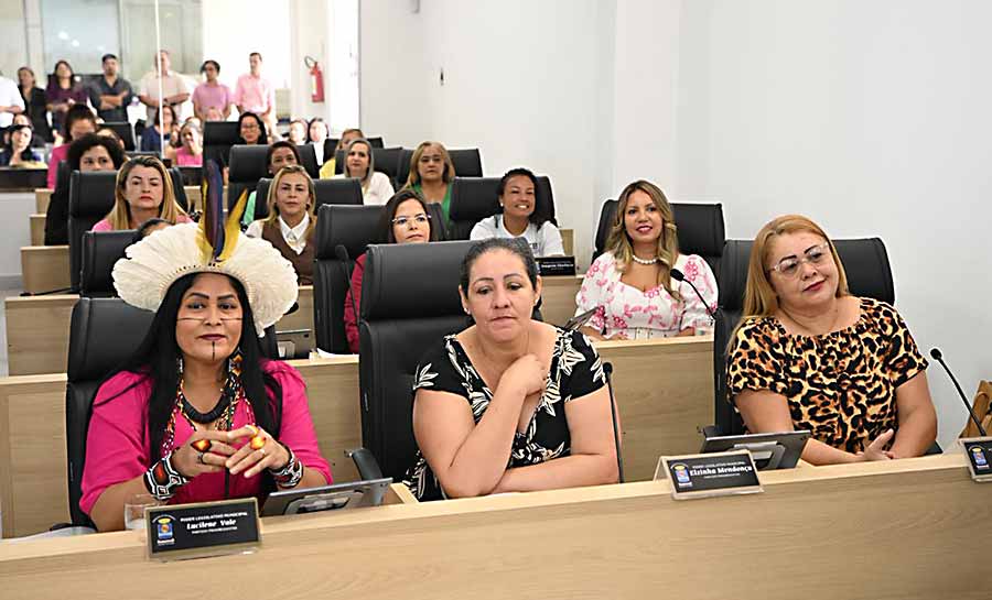 A sessão foi proposta pela vereadora Elzinha Mendonça e reuniu lideranças femininas, representantes de instituições públicas e mulheres homenageadas por suas trajetórias e contribuições para a sociedade acreana.